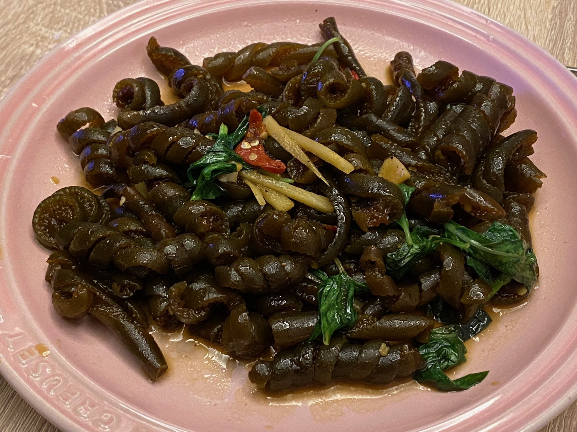 前幾天老婆做家常菜,其中一道就是九層塔炒海茸。臉書打卡有朋友叫這種菜「電話線」,看看這種捲曲的海菜,會得到這種名字頗令人莞爾。查了一下維基百科: